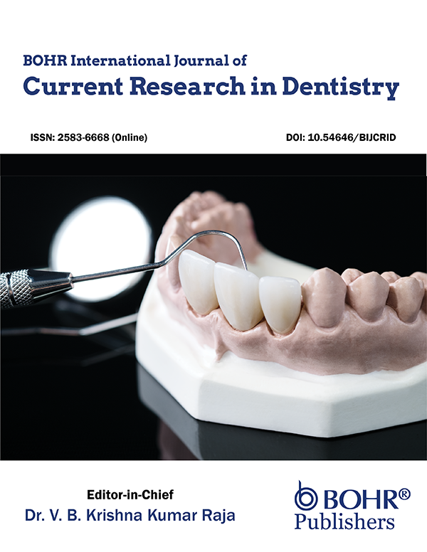 BOHR International Journal of Current Research in Dentistry (BIJCRID) is a peer reviewed open-access journal dedicated to fostering innovation and advancing knowledge in the field of Current Research in Dentistry. Our journal aims to provide a forum for researchers, clinicians, and professionals to share their insights, discoveries, and advancements in various topics of Current Research in Dentistry. Authors are solicited to contribute to the journal by submitting articles that illustrate high-quality research and contributes to the understanding, diagnosis, treatment, and prevention of diseases.